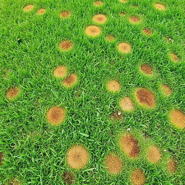 This disease manifests as small, silver dollar-sized spots on grass blades. It is often the result of poor nitrogen levels in the soil, coupled with high humidity and cool nights.